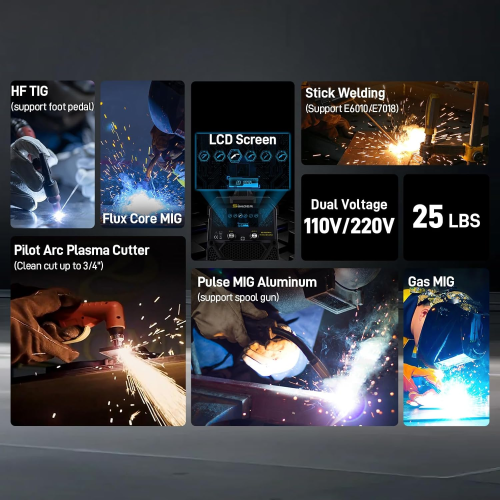 El SSIMDER SD-4050Pro es un potente soldador multiproceso 10 en 1 diseñado para profesionales y aficionados del bricolaje. Con un rango de voltaje de 96 V a 240 V y una corriente de hasta 200 A, combina soldadura MIG por pulso, MIG de gas mixto, MIG sinérgica, núcleo de fundente, TIG HF/Lift, Stick/MMA y corte por plasma ARC piloto. Ideal para trabajos en aluminio, acero inoxidable, cobre y otros metales.